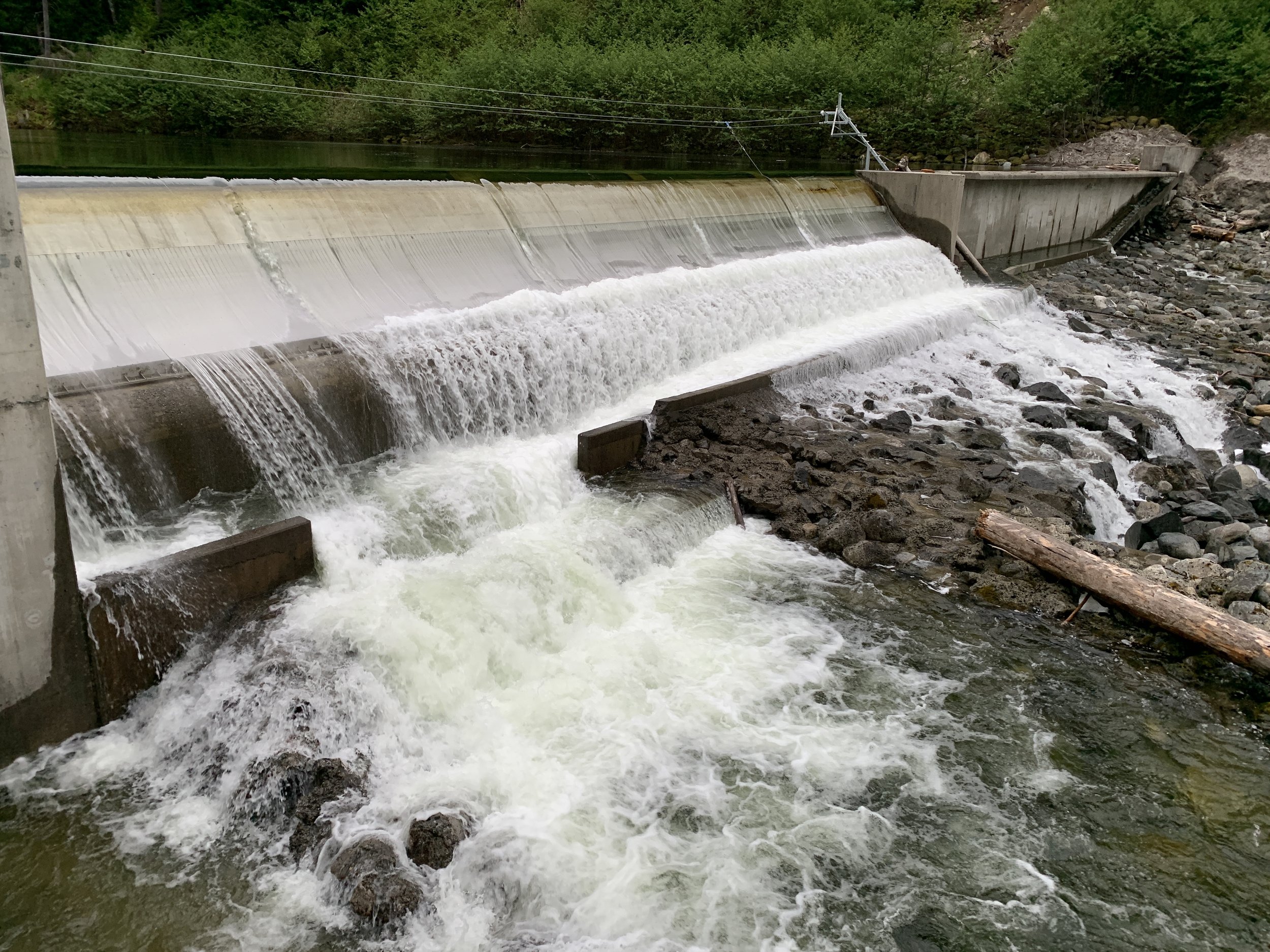 Haa-Suk Creek install shows the long automated brush moving across the Coanda Screen.